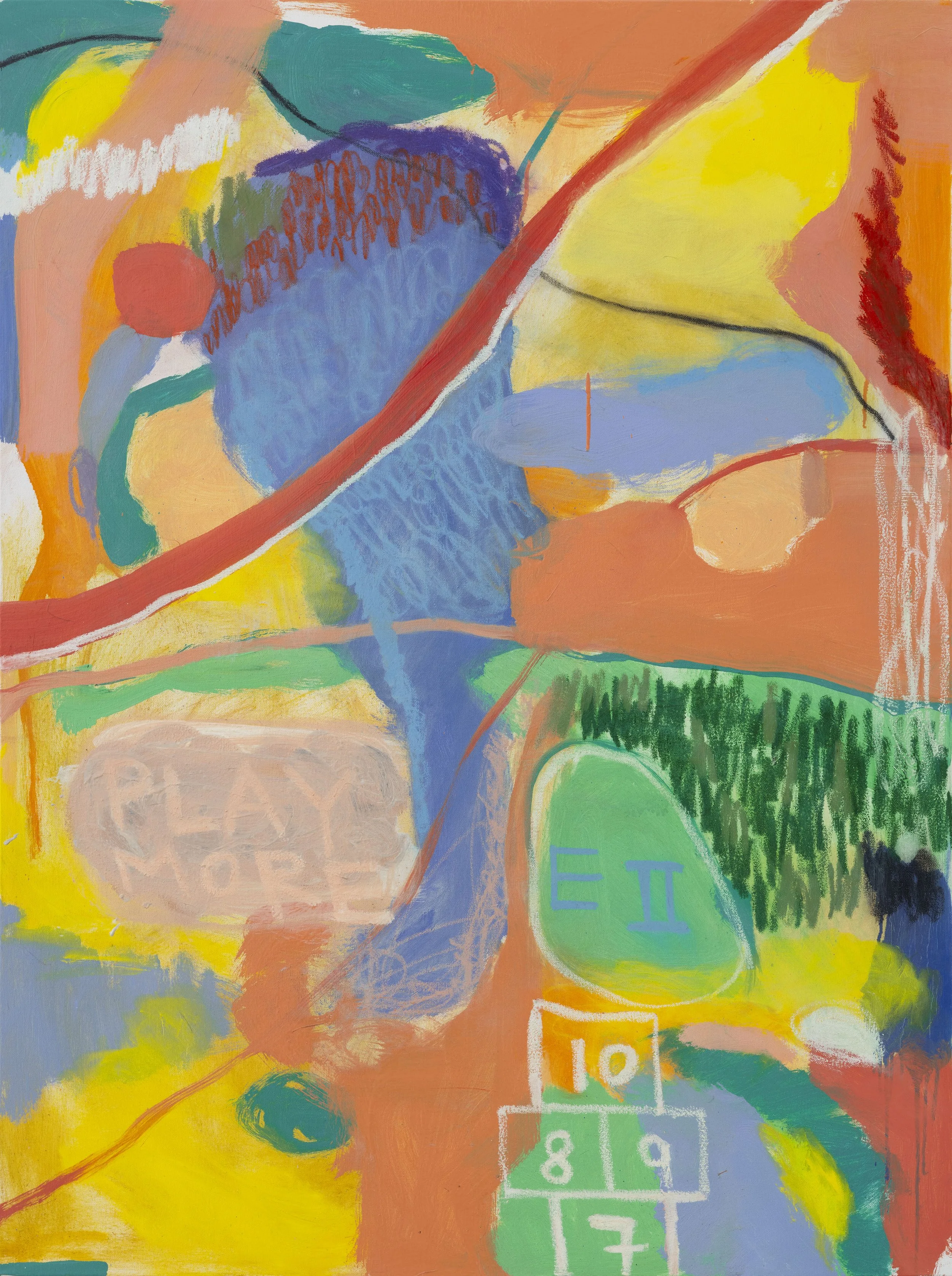 Play More, 2023. Mixed media on canvas -- 48 x 36 x 1.5 inches